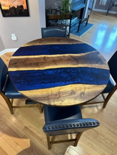 Please email bryan@resinflux.com with your favorite wood and resin color, as well as what size table you want.